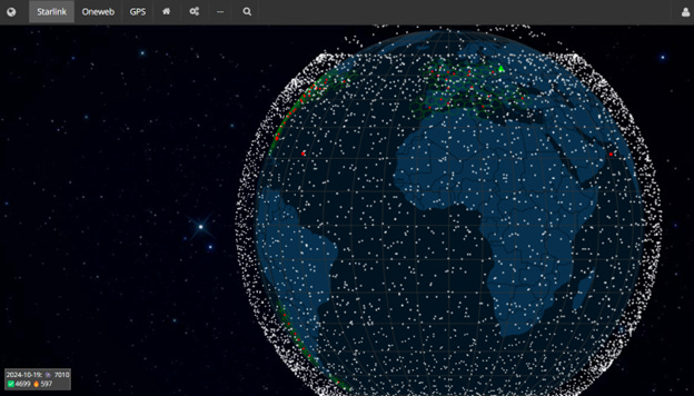This is a map of Starlink’s satellites in the sky, right now. These satellites are in low-earth orbit, or LEO. Starlink is part of Space X, which is one of Elon Musk’s companies.