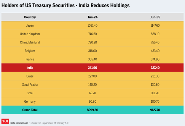 India’s holdings of US Treasury’s fall as gold holdings rise