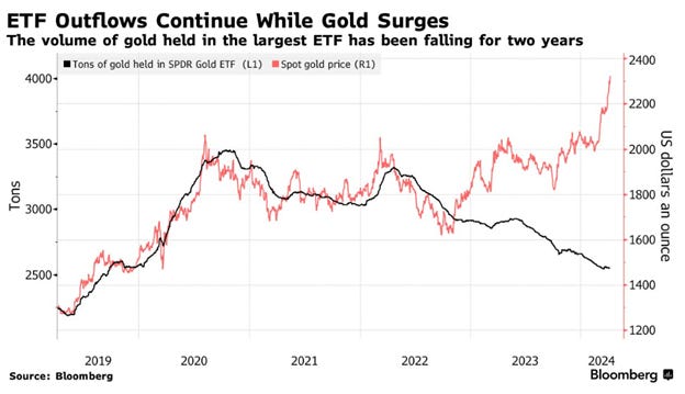 Bloomberg, The Gold Market Hunts for Answers Behind Bullion’s Sudden Surge https://www.bloomberg.com/news/articles/2024-04-07/the-gold-market-hunts-for-answers-behind-bullion-s-sudden-surge