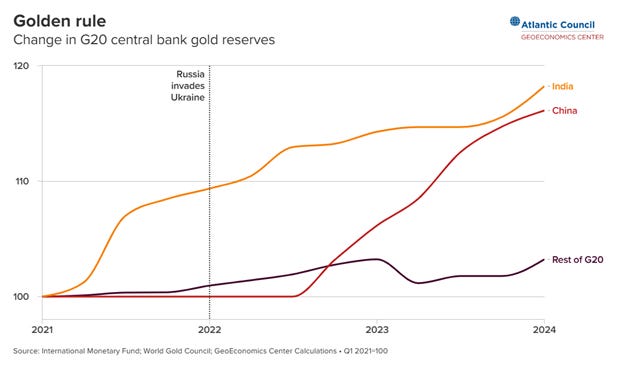 The real story: China and India central banks are driving the buying, and are doing so to de-risk from Western financial systems