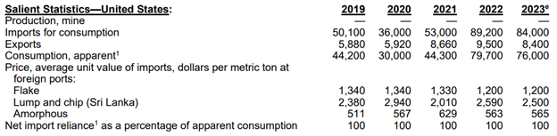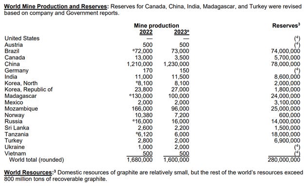 This report is from the US Geological Survey, and their section for graphite. And the most important rows on this table are at the very top and the very bottom.