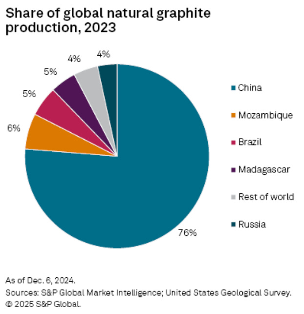 China and its BRICS trading partners have near-monopolies on the supply of graphite, and China itself refines nearly all of the graphite globally. And China has placed new export restrictions on graphite, choking off much of the supply to Western markets.