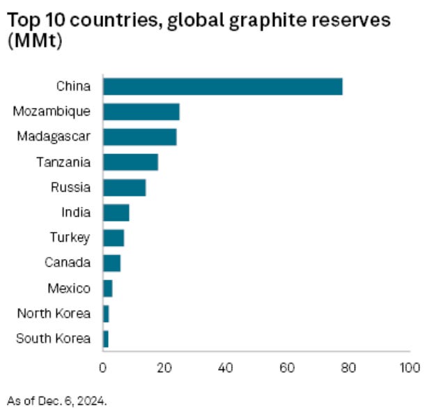 China is 76% of the graphite mining, Mozambique is not a BRICS country but is very friendly to China because of Chinese Belt and Road investments there. Brazil is BRICS. Russia is BRICS. Those four are over 90%.