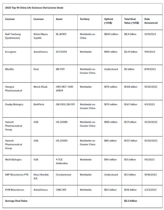 Major Life Sciences Licensing Deal Trends in China in 2023 https://www.goodwinlaw.com/en/insights/publications/2024/03/insights-lifesciences-major-life-sciences-licensing-deal-trends