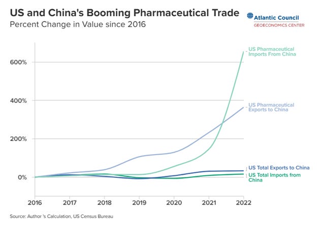 The US is relying more on China for pharmaceuticals — and vice versa https://www.atlanticcouncil.org/blogs/econographics/the-us-is-relying-more-on-china-for-pharmaceuticals-and-vice-versa/