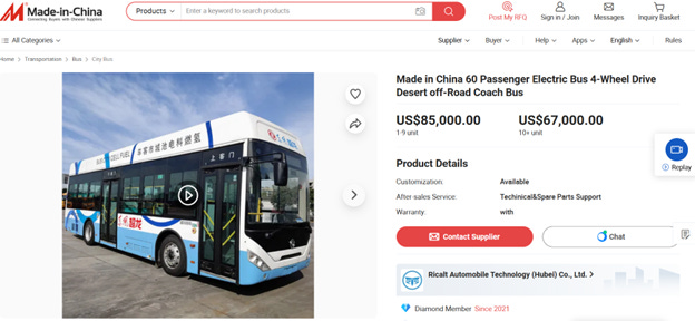 Let’s stop here and do the math on what we know so far. 160 million dollars divided by 435 buses is over $360,000 per bus. $360,000 each. Let’s head over now to see how much it would have cost to buy the electric buses from Chinese factories, where they can get all the graphite they want, no problem, and have a lot of experience building electric buses.